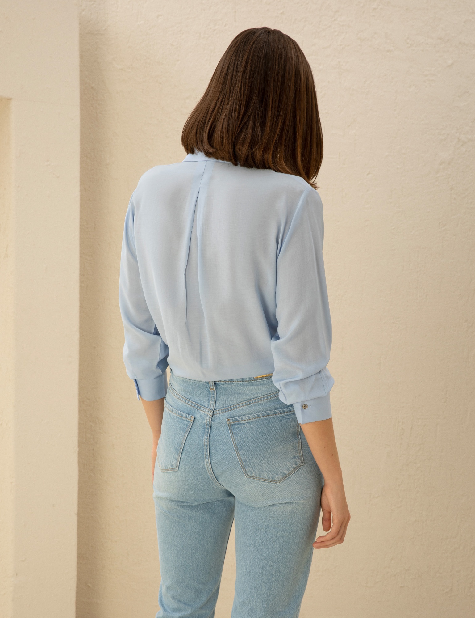 Рубашка укороченная с завязками Pierre Cardin woman. Женская рубашка выполнена из хлопка, обеспечивающего комфорт и удобную посадку. Укороченный крой и завязки создают современный силуэт и позволяют регулировать объём. Классический воротник и застёжка на пуговицы подчёркивают лаконичный стиль модели, универсальной для летних образов.
